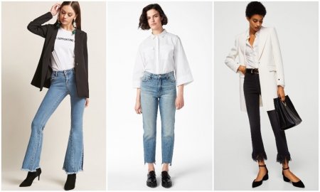 Forever 21; Monki; Mango.Прошло уже три года, а небрежно обрезанные джинсы все еще остаются популярными. В этом году точно стоит делать ставку на асимметричный крой, на аккуратную бахрому, а также на чуть расклешенные модели до щиколотки.