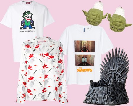 Вещи с принтами кадров из любимых фильмов твоего партнера — еще один подарок, который не отправится пылиться на дальнюю полку. Можно даже устроить киновечер дома, нарядившись в футболки и толстовки с характерными слоганами или рисунками, запастись попкорном и шампанским.