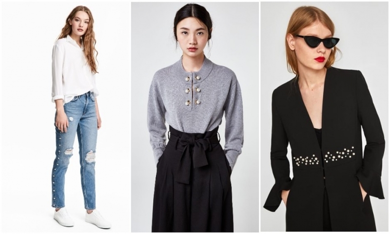 H&M; Uterque; Zara.Вещи, украшенные крупными жемчужинами, по-прежнему в моде. Такой декор, напоминающий весеннюю капель или нежные подснежники, точно задаст правильное, приподнятое настроение. Кстати, стилизовать такие вещи проще простого. Нарядные джинсы рифмуются буквально с любой одеждой, как и закрытые, строгие свитеры или пальто А-силуэта.