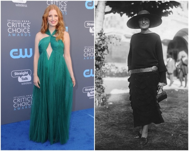 Джессика Честейн в Vionnet; платье Vionnet, 1923 год.«Кутюрную» линию «гнет» и Schiaparelli. Бертран Гийон, креативный директор бренда, перезапущенного в 2013 году (на этом посту он сменил итальянца Марко Дзанини), создает сложные творения, в которых угадываются узнаваемые коды марки — принты trompe l'oeil («обманки»), рисунки, напоминающие творения сюрреалистов 30-х годов, с которыми дружила и сотрудничала сама Эльза Скьяпарелли. Как и многие марки-«возвращенцы», эта не стала серьезным трендсеттером, но критики к ней благосклонны, а в числе клиентов новой Schiaparelli, например, Тараджи Хенсон.