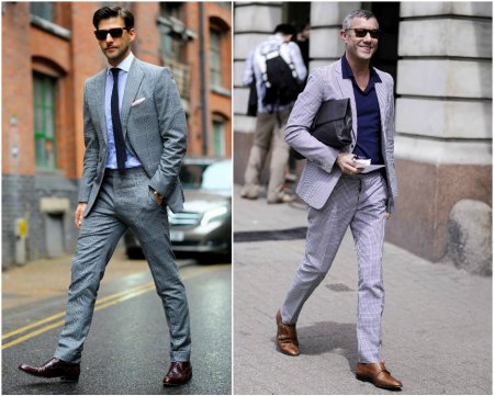 Если человек работает в офисе или занимает какую-то руководящую должность, у него должно быть минимум три рабочих костюма, один вечерний (в идеале — смокинг) и один casual-пиджак. Casual-пиджак может быть сделан из самых разных материалов. Зимой — это плотный твид, летом — лен или хлопок. Чаще всего такие пиджаки имеют более яркую расцветку, а носят их с однотонными брюками или джинсами. Casual-пиджак также подразумевает какие-то детали, например, накладные карманы, замшевые налокотники или интересные пуговицы (кожаные или клубные). Такой пиджак можно надеть на полуофициальную встречу или в выходной день. Кроме того, если вы сразу с самолета едете на встречу, то совершенно уместно быть в casual-пиджаке. Очень универсальная вещь!