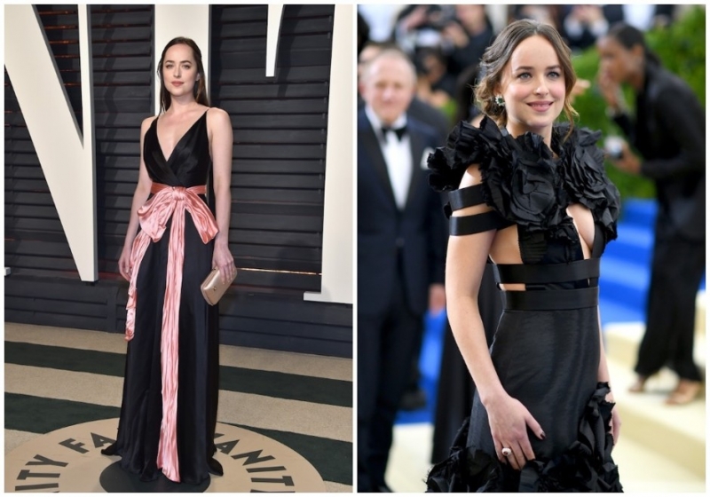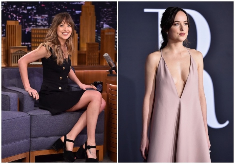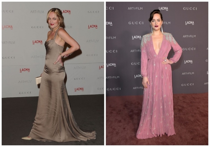 Слева 2018 год. Справа 2017 годОбладательница пышных форм и длинных ног Дакота Джонсон стала более смелой в выборе нарядов. В последние годы она не боится ни смелых декольте, ни ультракороткой длины. «Да, это правда, я не стесняюсь своего тела. Я им довольна и считаю, что все женщины должны чувствовать себя уверенно в любом наряде», — делится актриса.
