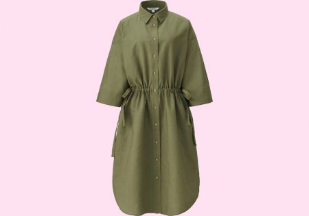 Uniqlo 1 999 руб.Хоть на войне, хоть на работе, хоть на свидании ты будешь смотреться роскошно в простом платье цвета хаки. Сборки на талии можно регулировать по настроению: не хочешь ни с кем знакомиться – распусти их, пусть платье скроет все прелести твоей фигуры, а если есть время и настрой для флирта – присборь, покажи миру свою талию.
