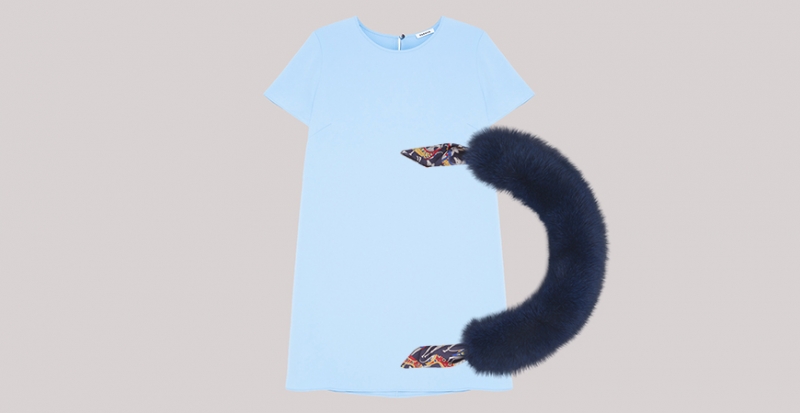 Воротничок Gutseriev & Maximova; платье P.A.R.O.S.H. (aizel.ru)Помпон на сумке уже позволит тебе почувствовать себя в тренде. Дизайнеры даже шьют платья с меховыми вставками. Главное, не переборщить с деталями. Мех в образе — это уже очень яркий акцент. Добавь к комплекту туфли и цветные носки.