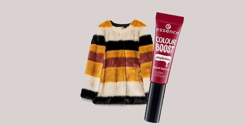 Шуба из экомеха Zara; помада EssenceОчень актуальны этой весной большие размеры жилетов и пальто. Пусть они ниспадают до самых щиколоток. Продолжается тенденция пуховиков-одеял, но уже на весенний манер. Массивные вещи из экомеха не требуют аксессуаров, достаточно оттенить их яркой помадой или перчатками.
