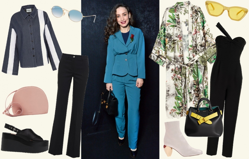 Слева: рубашка JI WON CHOI x YOOX; очки Ray-Ban; брюки BEATRICE.b; сумка Vagabond; босоножки Stradivarius. Справа: кимоно H&M; очки MANGO; комбинезон Motivi; сумка Burberry; ботильоны Valentino Garavani (yoox.com).