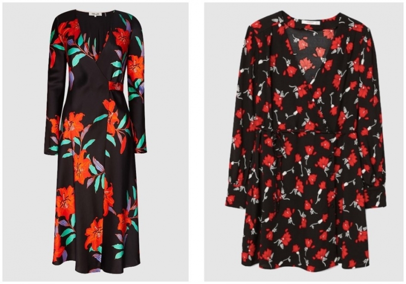 Слева платье DOLCE & GABBANA 231 000 рублей (tsum.ru), справа платье Diane von Furstenberg 31 000 рублей (aizel.ru)Хотя, конечно, чаще именно масс-маркет несет в массы идеи талантливых дизайнеров модных домов.