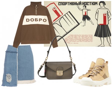 Толстовка Zasport (aizel.ru); юбка Fashion.Love.Story; сумка Longch кеды Acne Studios (aizel.ru)Это событие для людей, интересующихся историей и модой. Тут расскажут и наглядно продемонстрируют трансформации и вариации стиля милитари. В экспозиции собрали больше ста работ российских дизайнеров, предметов обмундирования Красной армии из музейных и частных фондов, произведений декоративно-прикладного искусства, в которых использованы военные мотивы.