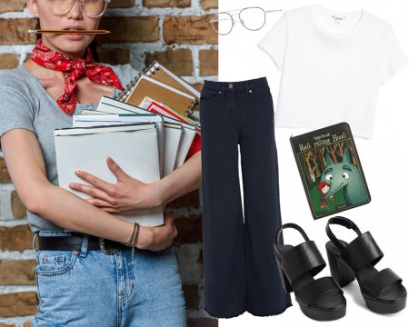 Представь, что ты вернулась в счастливые школьные годы. Собери комплект из светлого верха и темного низа, рюкзачка и очков (можно без диоптрий) и почувствуй себя ботаником!