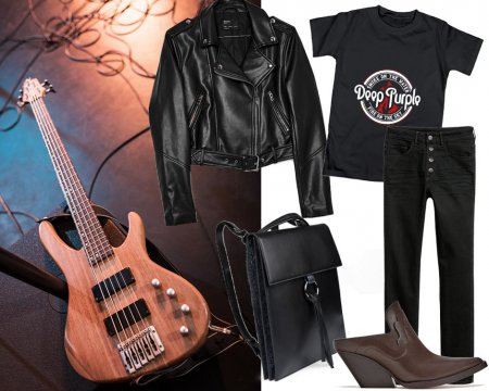 Оденься так, чтобы рокеры одобрили: черные джинсы или кожаные брюки (если не боишься жары), футболку с названием группы — самый беспроигрышный вариант.