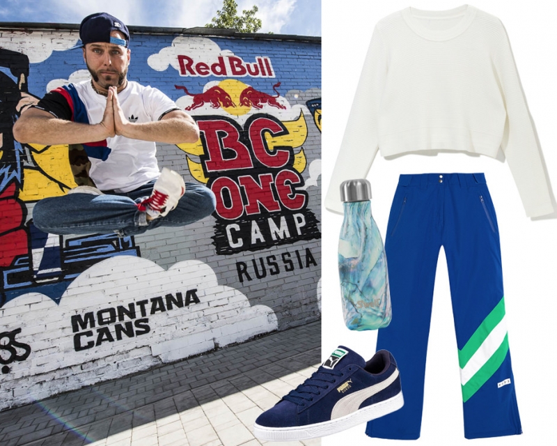 Джемпер Reserved; бутылка-термос Swell (FV Sport); брюки ASOS; кеды PumaДень открытых дверей хип-хоп культуры — Red Bull BC One Camp — в новом общественном пространстве Порт «Севкабель» на В.О. Все три дня с утра до вечера в Порту будут идти бесплатные мастер-классы по уличным танцевальным стилям — помимо такого родного хип-хопа будут и парные танцы — new style hustle, например. Вдохновиться на тренировки можно, посмотрев на профессиональных би-герл в баттле «8 пальм» или на эксцентричных мадам в соревнованиях waaking in da house. Параллельно, в реальном времени, будут возводиться монументальные граффити в сопровождении живой музыки. Для ума обещают полезные лекции, мы особенно рекомендуем «режим вдохновения» от рэпера Эрнесто Заткнитесь (такой уж творческий псевдоним) о секретах тайм-менеджмента для творческих людей и «создание digital контента, как развить свой стиль в социальных медиа» от французского фотографа Little Shao.