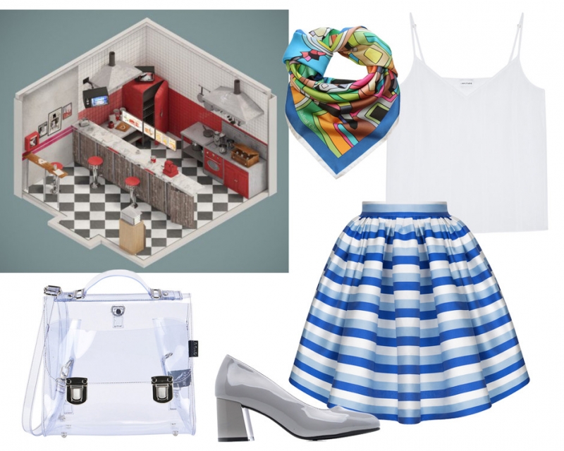 Одеваться в стиле эпохи, конечно, необязательно, но было бы прикольно сделать пару стилизованных фото после того как пройдешь все задания в декорациях. В 40-е годы мода резко сменила курс с лаконичного военного стиля к женственному new look (спасибо, Кристиану Диору), так что мы голосуем за девичье платье и туфли на устойчивом каблуке.