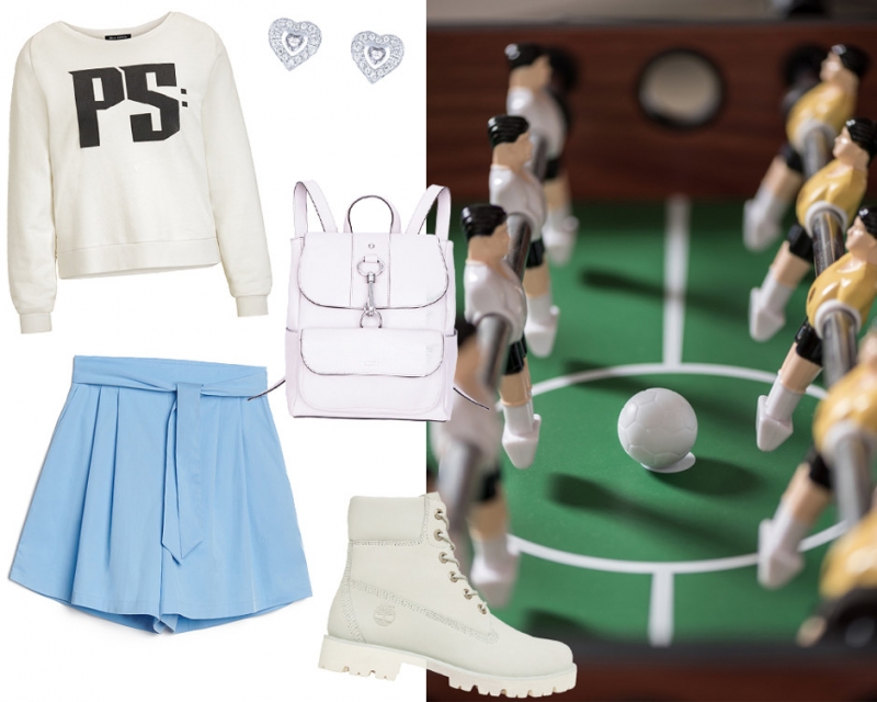 Надевай майку из футбольной коллаборации, удобные и милые босоножки на платформе, а бархатный мяч (сделанный специально к ЧМ в России) пусть станет талисманом и символом великой победы.