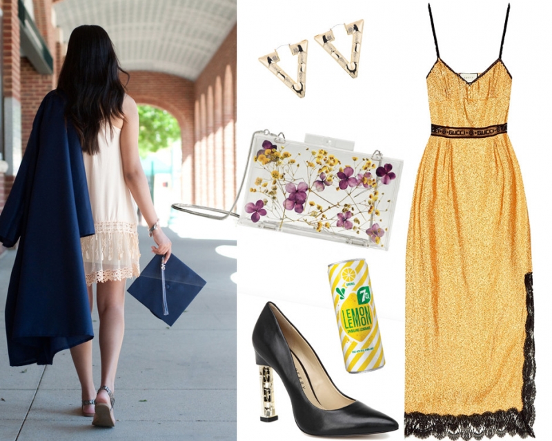 Серьги ASOS; платье Gucci (aizel.ru); сумка Mango; лимонад Lemon Lemon; туфли Katy Perry (rendez-vous.ru)Скорее всего, один выпускной в своей жизни ты уже пережила. Сейчас самое время предаться ностальгии и вспомнить эту радостную минуту вступления во взрослую жизнь, найти старые фотографии и еще раз ужаснуться платью, которое ты выбрала тогда.