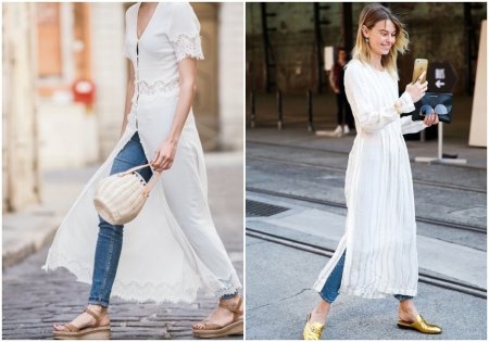 Да, и так тоже можно, а почему бы и нет? Идеальный вариант для такого образа — платье-рубашка, даже если оно будет в пол — выйдет все равно отлично. А подружки тем временем будут кусать локти, почему они не додумались до этого раньше.