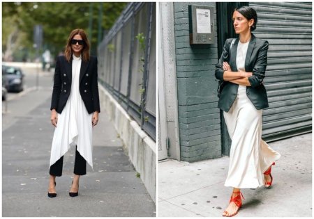 Черный верх, белый низ и, наоборот. Знакомая ситуация? Дополняем образ легким строгим жакетом и отправляемся на работу. А чтобы у начальника не было вопросов, выбираем платье с гладкой фактурой. Атлас, плотный хлопок, вискоза — то, что нужно. А вот прозрачное кружево лучше оставить для вечернего выхода.