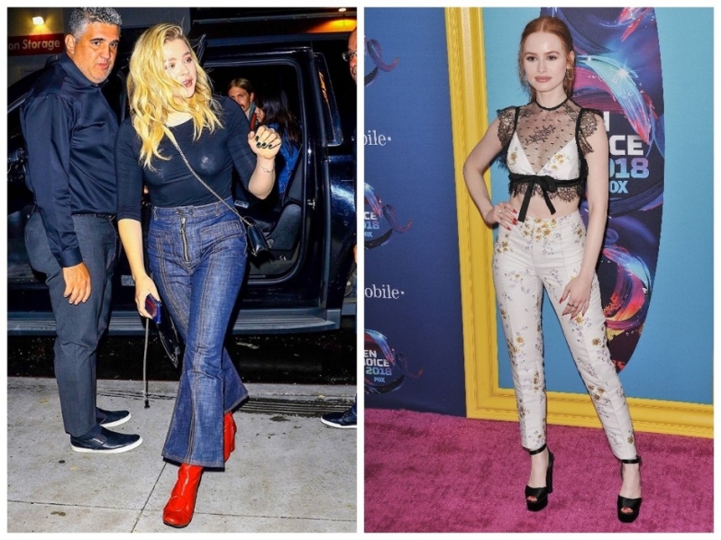 Хлоя Морец на прогулке в Нью-Йорке (слева) и Мэделин Петш (справа) на премии Teen Choice AwardsЛюбуйся нелепыми выходами звезд, а также смотри на более удачные образы знаменитостей в обтягивающих нарядах и коктейльных платьях.