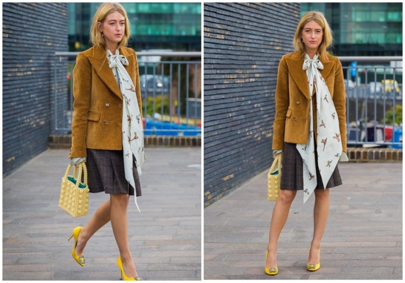Этот благородный материал примирит с погодными условиями твою любимую прозрачную шифоновую блузку. А контрастное сочетание материалов докажет, что ты разбираешься в трендах. Подойдут вельветовые брюки, юбка или жакет, накинутый на плечи (пока не совсем похолодало).