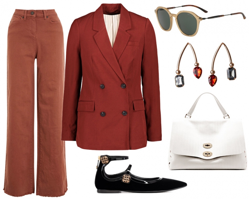 «Вот на дороге специально линии нарисовали — нет, все мужчины между линиями ездят. Вот я правильно передвигаюсь — я по линиям! Вот как нарисовано — я еду. А мужиков бесит, что едет грамотный человек — они начинают сигналить!»Брюки и жакет next.com.ru; очки Giorgio Armani; серьги Violeta by Mango; сумка Zanellato (Кашемир и Шелк); туфли BallinЗа руль мы сажаем Степаненко в брючном костюме кирпичного цвета — цветные пары из брюк и жакета в моде с лета до зимы, а то и на следующий теплый сезон задержатся. К нему подбираем обувь на плоской подошве, чтобы чувствовать педали автомобиля и аккуратно ехать — точно-точно по линиям, и темные очки — для имиджа автоледи.