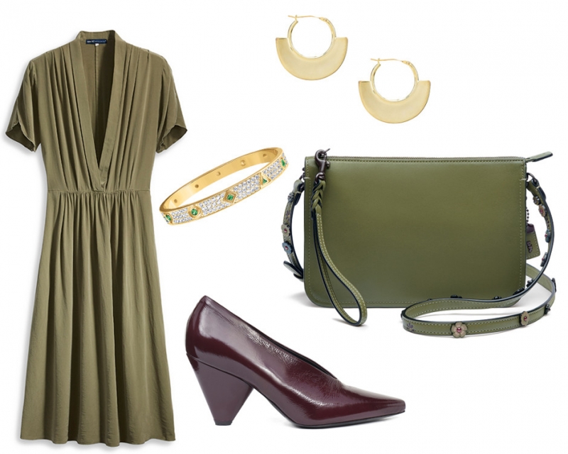 «Как можно пойти за хлебом, потратить 5 тысяч рублей и забыть купить хлеба?»Платье LEVI'S; серьги EYLAND (YOOX.COM); браслет KoJewelry; сумка Coach; туфли PremiataСлишком большую сумку брать на шопинг точно не стоит, тем более что будет повод попросить нового кавалера понести пакеты с покупками и вместе заглянуть за хлебом. Мы думаем, что Елене стоит надеть платье с красивым вырезом, небольшие и удобные каблуки и несколько украшений — ведь даже выход за хлебом может стать поворотным.