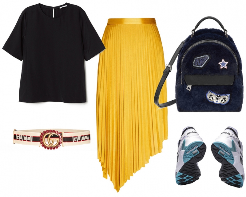 «Мужик — это всегда лотерея, какой билет ни возьми, все равно больше рубля не выиграешь».Футболка H&M; юбка Mo&Co (aizel.ru); рюкзак FURLA; пояс Gucci (aizel.ru); кроссовки ReebokСтендап — это тебе не «Кривое зеркало», так что мы отправляем Елену Степаненко посмотреть, как шутит новое поколение. На такое событие и одеться нужно прогрессивно — кроссовки (да, даже Брижит Макрон позволяет себе расслабиться и надеть эту обувь), плиссированная юбка, простая футболка и рюкзак — так и мужчина помладше клюнет. Лет на 20—30, не меньше.