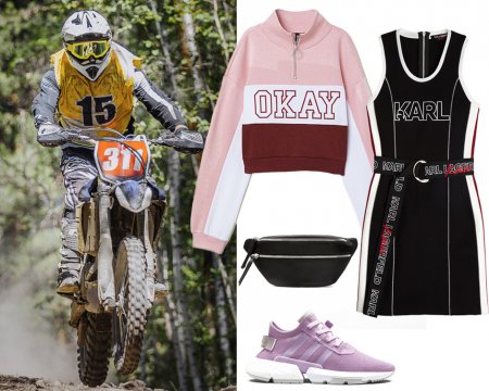Тебя мы приглашаем только посмотреть — а делать это будем в платье в мотоциклетном стиле, кроссовках и свитшоте — главное, чтобы было удобно оглушительно болеть за любимчика на мотоцикле.