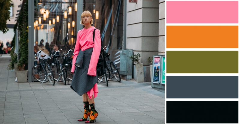 Мало того, что в образе сошелся десяток цветов, так еще и перемешались принты и стили. Клетка с мелкими цветочками может подружиться, если их познакомить поближе, а кроссовки сойдутся с девчачьими розовыми колготками. Если это чересчур вычурно для тебя — не расстраивайся, просто посмотри на палитру и попробуй собрать эти моноцвета вместе, взяв за основу только два, а остальные использовать в аксессуарах и украшениях.