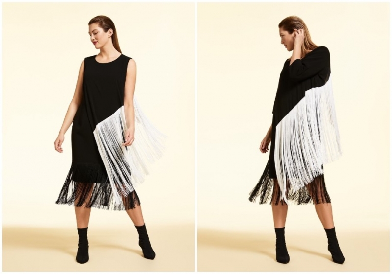 Это платье обрадует тех, кто влюбляется один раз и навсегда, — в комплекте идут рукава длиной 3/4, которые можно подшить. Косая контрастная бахрома скроет все, что ты бы не хотела показывать на первом свидании, и поможет придать легкости каждому твоему движению.