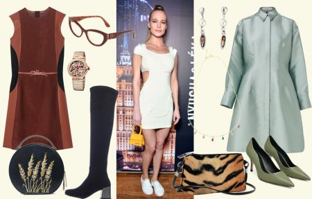 Слева: платье Longch очки Dolce&Gabbana; часы Bvlgari; ботфорты Rio Fiore; сумка Pepfer (dressone.ru). Справа: серьги UNOde50; платье DOROTHEE SCHUMACHER; ожерелье Tous; сумка Save My Bag; туфли ZaraМы подготовили для нее сразу два образа на замену.
