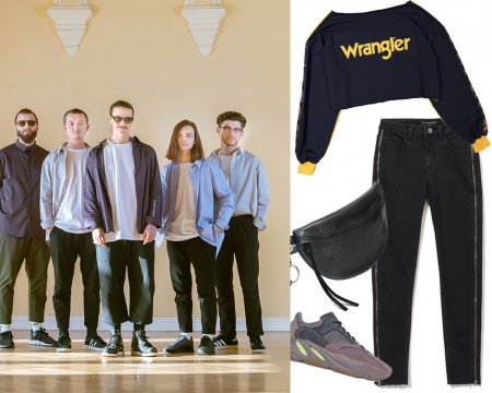 Свитшот Wrangler; джинсы Reserved; сумка Zara; кроссовки adidas + KANYE WESTСпециально к большому концерту группы On-the-go российский бренд NNedre создал рубашки и футболки для их выступления. Все ткани — в цветах обложек музыкальных альбомов, на каждой вещи — названия альбомов группы, так что если у тебя хорошее зрение — сможешь разглядеть из танцпартера.