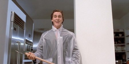 Кадр из фильма «Американский психопат».У тебя дома случайно нет топора? Не удивляйся этому вопросу, потому что если есть, то тебе осталось добыть длинную пластиковую куртку (подойдет дождевик), сдобрить ее брызгами фальшивой крови и надеть поверх костюма.