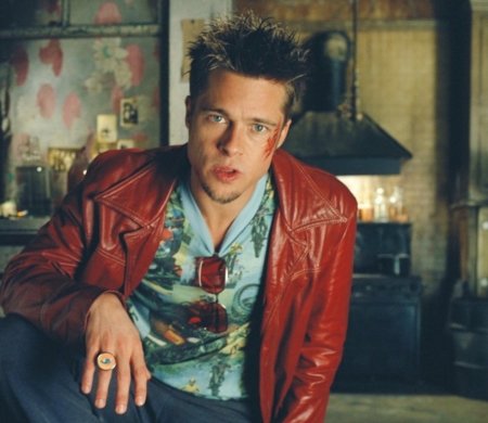 Кадр из фильма «Бойцовский клуб».Ты крут и хочешь, чтобы в этот вечер никто в этом не сомневался? Тогда рецепт прост — кожаная коричневая куртка, футболка с дерзким принтом и пара-тройка бутафорских синяков и царапин. И да, как ты сам понимаешь, твоим волосам потребуется гель. Много.
