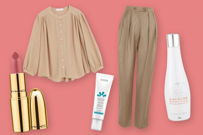 Рубашка Mango; брюки 12Storeez; крем-гель, Babe; помада, MAC; разглаживающий шампунь, NyceДа-да, мы тоже знаем все шуточки (основанные на реальных событиях) о том, что перед камерой все сидят в строгой рубашке и трусах. Предлагаем отказаться от такой «традиции», которая сковывает движения, и одеться полностью. Выбирай просторные рубашку и брюки. Во-первых, это удобно, во-вторых — в тренде.
