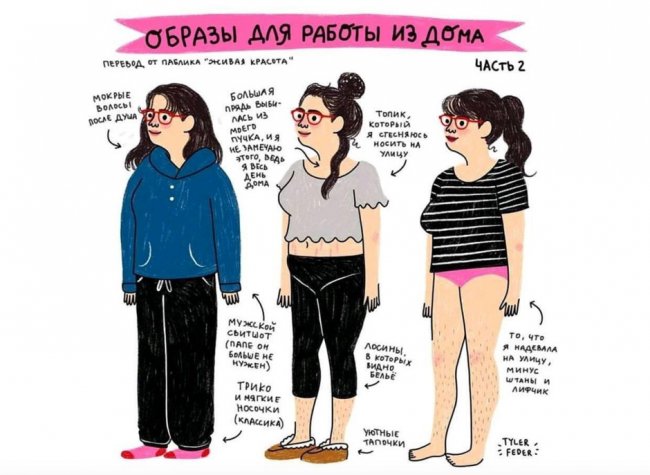 12 образов, среди которых ты точно найдешь себя.Этой весной мы должны проводить больше времени дома из-за непростой ситуации в мире. Тема образов для дома далеко не первая и, разумеется, не самая важная, но актуальна, как никогда. По ссылке ты можешь оценить несколько образов для работы из дома или присмотреть недорогую пижаму, а ниже — отыскать себя: популярный стилист и основатель Школы шопинга Татьяна Тимофеева показала девять образов, которые чаще всего девушки примеряют дома. Всего 12 луков. На первой картинке: университетское худи и лосины; пижамные шорты, мягкий лиф и плащ-плед; мягкое дырявое трико, свитшот и отсутствие белья. Посмотреть эту публикацию в Instagram Публикация от СТИЛИСТ SHOPPINGSCHOOL (@shkola_shopinga) 18 Мар 2020 в 5:10 PDT На другой картинке — еще три: мужской свитшот и трико; прозрачные лосины и топ; и то, что ты надевала на улицу, минус штаны и бюстгальтер. Иллюстратор: Tyler Feder Готовься к большой распродаже на AliExpress: все тренды сезона со скидками! Следующая тройка: бомбер (а в карманах — куча салфеток), легинсы и гольфы; пижама со старым кардиганом; пижамные штаны, бюстгальтер и блузка (а все потому, что девушка собралась разговаривать по скайпу с коллегами). Иллюстратор: Tyler Feder И последние: старая футболка, отнятая у первой любви, со спортивными штанами и огромными носками; дырявые пижамные штаны с футболкой; огромное худи и легинсы. Иллюстратор: Tyler Feder Автором картинок стала талантливая иллюстратор, которая часто подшучивает над девушками и поддерживает их. А ты в каком образе узнала себя? А если хочется вдохновиться вечерней модой, жми на фото и смотри самые сексуальные платья звезд 2019 года: Важно: распродажа 10 лет AliExpress уже скоро - успей получить бесплатные купоны, чтобы сэкономить и создать неповторимый образ. Елена НечаеваФото: Photo by MAX LIBERTINE on Unsplash; инстаграм