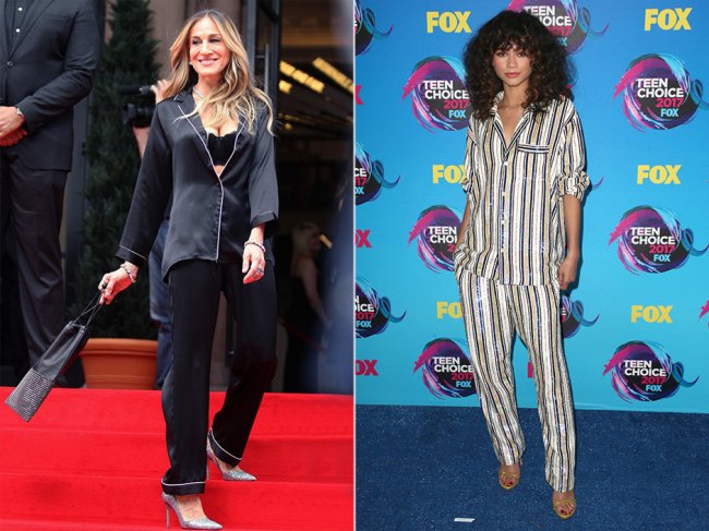 Сара Джессика Паркер и Зендая. Legion-media.ruГолицына вышла замуж в 1949 году и обосновалась в Италии, где и открыла собственное ателье. В 1960 году она устроила в Палаццо Питти дефиле, поразившее воображение европейских модниц и шокировавшее ханжей. Коллекцию составили шелковые костюмы из узких брюк-капри и куртки без рукавов, чем-то слегка напоминавшей старинный камзол. Ирен назвала свое творение palazzo pajama. Носить такое могли только хрупкие и тонкие женщины. Первой оценила новинку голливудская кинозвезда Одри Хепберн, которая дополняла «пижаму» своими любимыми балетками на плоской подошве. Отдала «пижаме» должное и знаменитая модная редакторша Диана Вриланд.