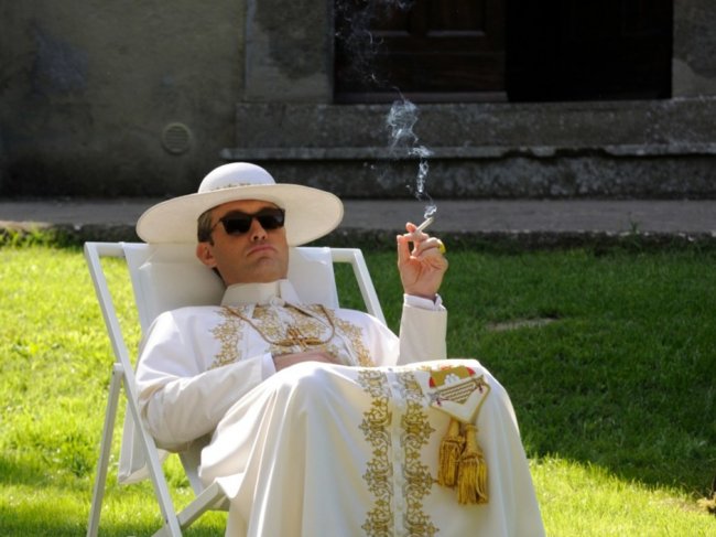 Больше всего брендовых вещей было в «Молодом папе». Герой Джуда Лоу, Пий XIII, несколько раз появился на экране в красных бархатных туфлях. Специально для сериала было создано две пары туфель — к первой руку приложила компания Swarovski, расшив обувь золотой нитью и серебром, а ко второй Кристиан Лабутен.
