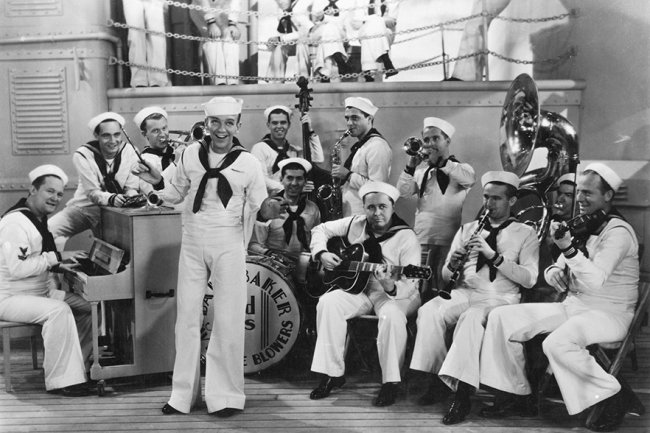 Фильм «Следуя за флотом» 1936 г. Rexfeatures.comВпрочем, когда подобная мелочь как наряд вне очереди или пара суток на гауптвахте могла остановить настоящих модников? Самые лихие из них не только расшивали низ своих брючин, но и вшивали в низ штанин свинцовые грузики: таким образом брюки красиво драпировались. Есть версия, что у грузиков был и практический смысл. В случае все того же кораблекрушения (или гибели судна во время морского боя) моряку, оказавшемуся в воде, избавиться от брюк с грузилом внизу штанин было гораздо легче, чем просто от широких брюк.