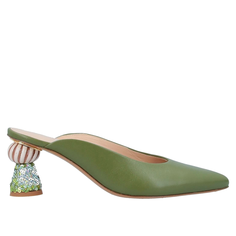 Кожаные мюли со скульптурным каблуком, украшенным пайетками, Jacquemus,