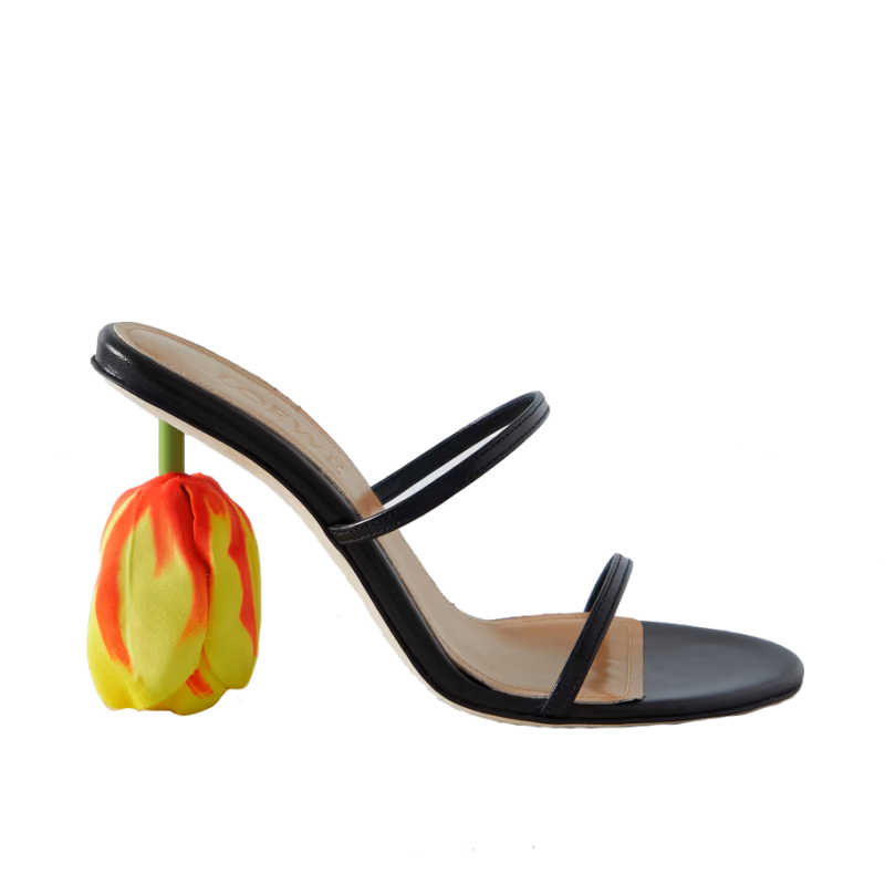 Если вы ищете туфли или босоножки на каблуке, не бойтесь причудливых вариантов! Это может быть скошенный или прозрачный каблук, каблук-рюмочка, каблук сложной геометрической формы или даже каблук с фигурками. На неделе моды в Париже люксовый бренд Loewe представил босоножки с каблуком в виде разбитого яйца, бутона розы и красного лака для ногтей. Удивлять так удивлять!