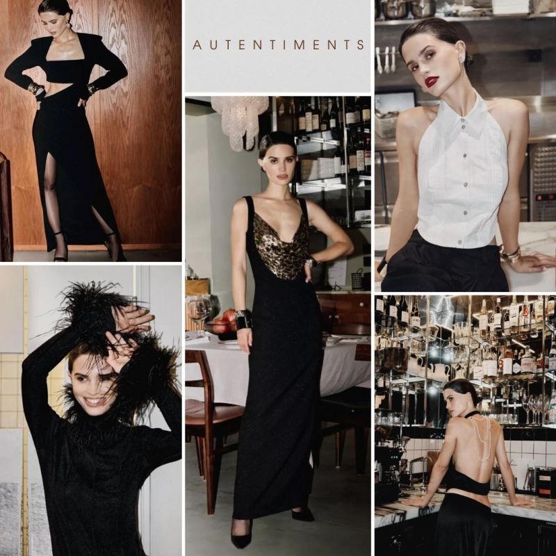 Новогодняя коллекция Autentiments разрабатывалась совместно с дизайнером Романом Кянджалиевым. Источник вдохновения - эстетика красных дорожек Голливуда 90-х, которой характерны классические силуэты, выверенный крой, дорогие материалы и акцентный декор. Главные цвета – черный, белый и золотой. И важно, что все модели будут актуальны не один сезон.