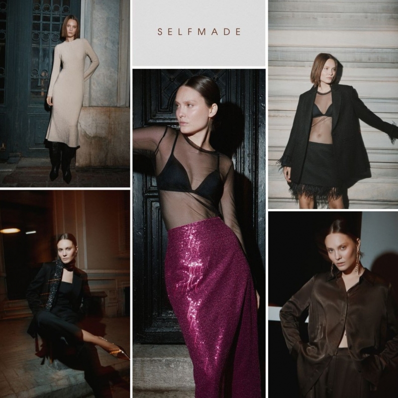 В новогодней капсуле Selfmade можно найти как более сдержанные варианты для официальных вечеринок, так и притягивающие взгляд яркие образы. Цветовая палитра тоже впечатляет: классический черный, приглушенный шоколадный и белый отлично дополняет оттенок с фиолетовым подтоном, похожим на Viva Magenta - главный цвет 2023 по версии Pantone. Также на сайте представлены модели в нежно-розовом, синем, зеленом и красном цветах.