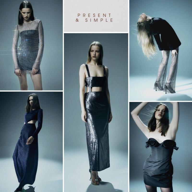 Блестки и необычный крой - так выглядит новогодняя капсула Present & Simple. В коллекции представлены полупрозрачные платья и брюки, а также вечерние платья с открытыми вставками на талии - такие модели в этом году часто выбирали голливудские дивы на красные ковровые дорожки. И абсолютный мастхэв, чтобы удивить окружающих и выделиться из толпы, - платье мини без бретелек и с декоративным лифом в виде роз.