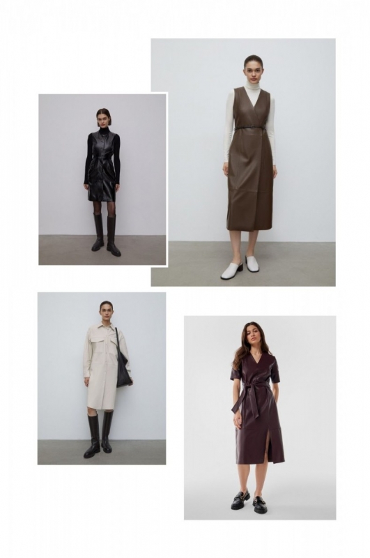Комментарий Эльвиры Янковской: «Платья из кожи не теряют своей популярности. Идеальные цвета – это черный и все оттенки коричневого. Отличным приобретением станет платье-сарафан, которое можно сочетать с рубашкой или водолазкой. Образ с платьем из кожи без сомнения можно назвать эффектным, выделяющимся из толпы».