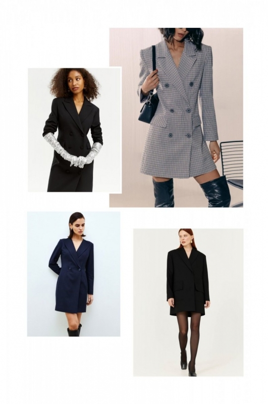 Комментарий Эльвиры Янковской: «Не забывайте про платье-жакет. Совсем недавно оно стало базовым в женском гардеробе. Такой образ смотрится утонченно и изысканно. Вариаций платья-жакета множество: асимметричный крой, без рукавов, с акцентом на талии, удлиненные и вечерние версии».