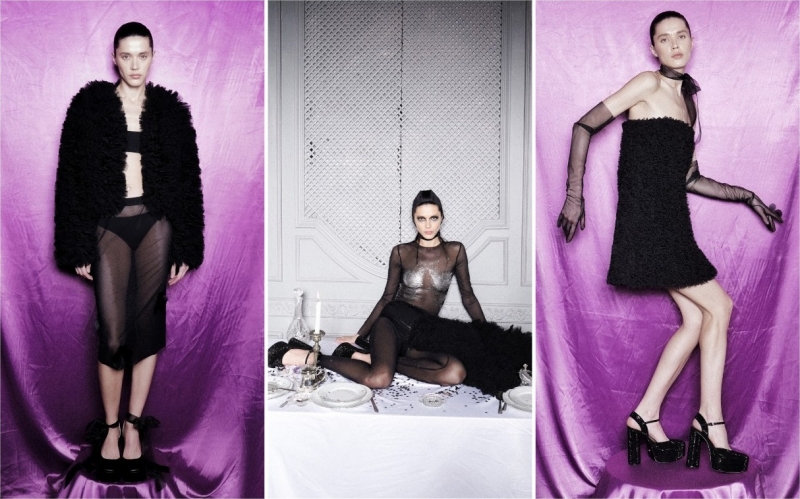 В основе концепции капсулы - понятие красоты, рассматриваемой через призму чувственности и сексуальности с тонким подходом к дизайну и изготовлению. В вечерней коллекции легко читается ДНК бренда в каждой детали. Знаковым изделием капсулы можно считать длинное молочное пальто. Также акцентными вещами в коллекции стали - шелковая юбка, бархатный корсет с глубокой зоной декольте и вечерние платья.