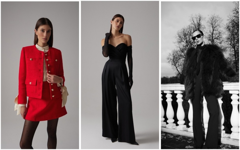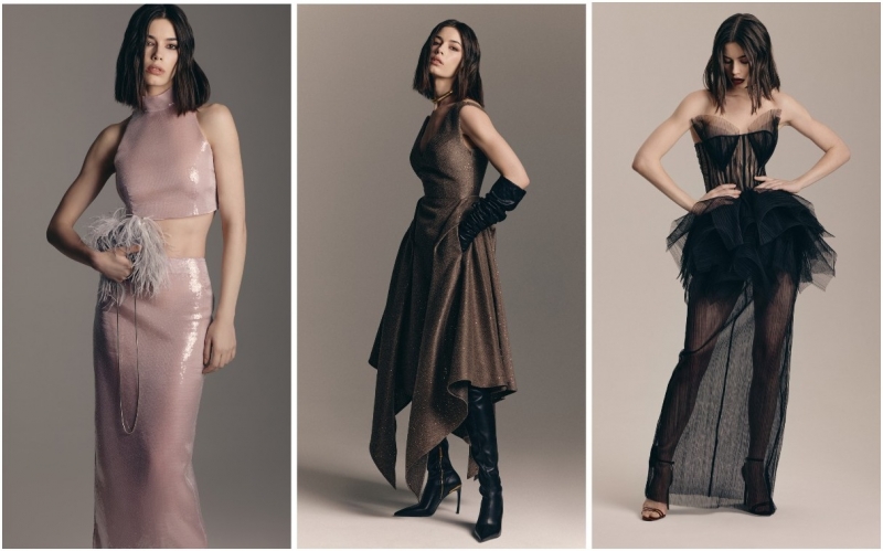 Модные пайетки, ткани с блеском, акцентная фурнитура и изящные линии силуэтов — коллекция комбинирует в себе лучшие праздничные традиции и их трендовое прочтение.