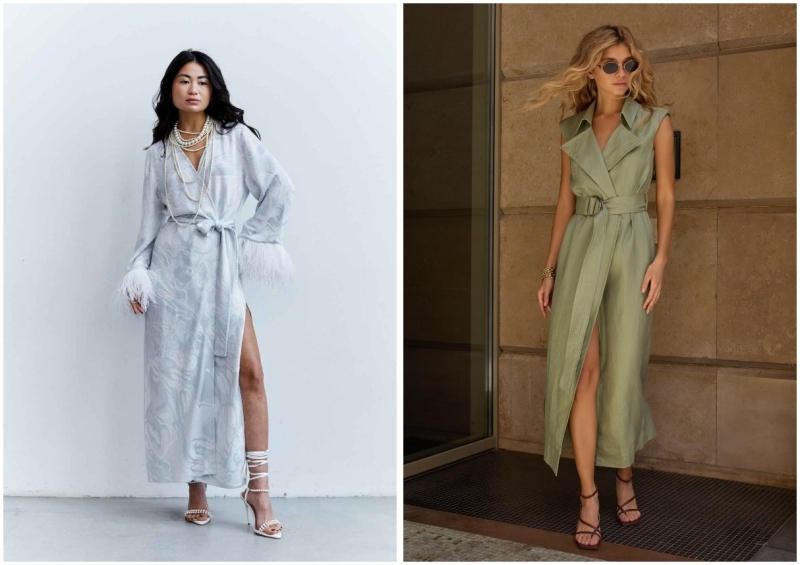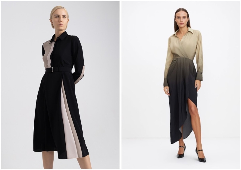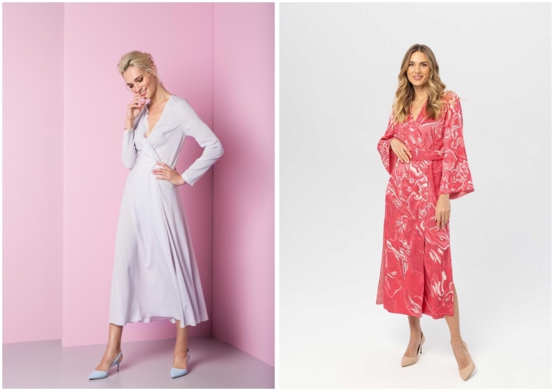 Платье с запахом – победитель в вопросе визуальной коррекции фигуры. А если на нем есть разрез по центру, то оно даст еще и эффект уменьшения объема в зоне бедер и увеличения длины ног. Такое платье может быть как приталенным, так и свободного кроя. У платья с запахом, как правило, V-образный вырез – это прекрасная комбинация, которая выгодно подчеркивает линию декольте и создает баланс верхней и нижней части фигуры.