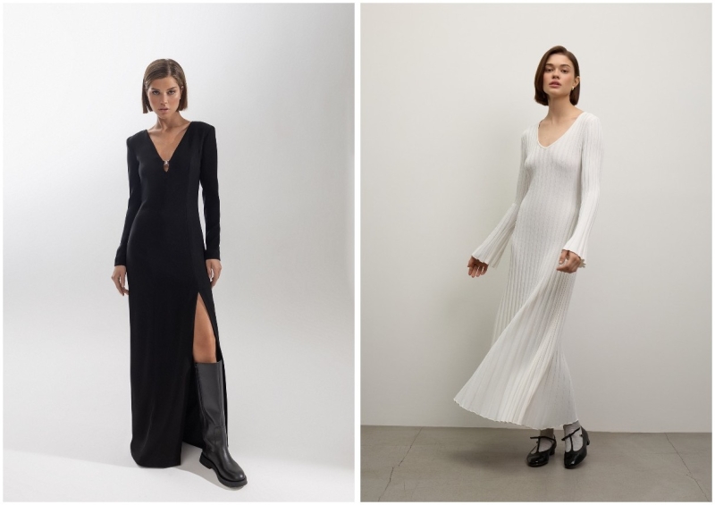 Такие формы выреза визуально удлиняют верхнюю часть тела, балансируя низ, а также они элегантно подчеркивают зону декольте. Сегодня этот фасон легко найти в магазине: он есть в ассортименте многих российских дизайнеров.