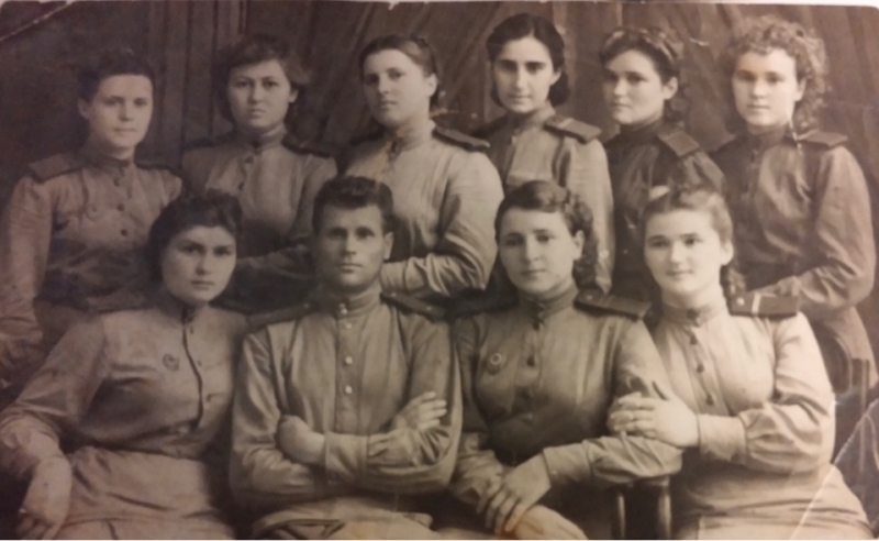 Клавдия Михайловна на фронтовой фотографии — в верхнем ряду в центре
