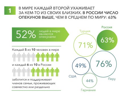 Сложно поверить, но на сегодняшний день каждый второй человек в мире заботится о ком-то из своих родных: пожилых родителях, детях или подростках, супругах. В России эта цифра еще выше: 63% наших соотечественников обеспечивают поддержку и уход кому-то из своих близких.